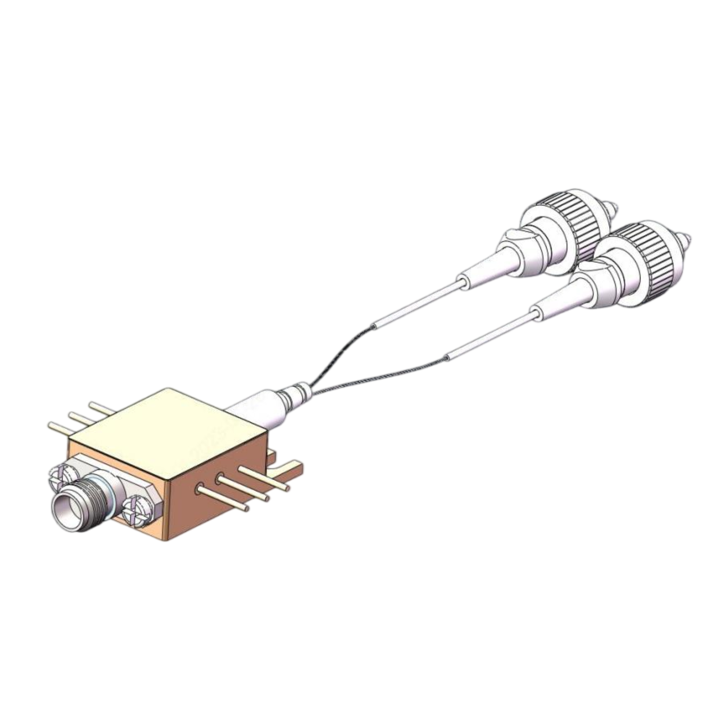 采用光電混合集成技術(shù),把裸芯片,裸電芯片和其它光學(xué)器件混合集成在一個(gè)微小空間,滿足客戶苛刻的小體積要求。